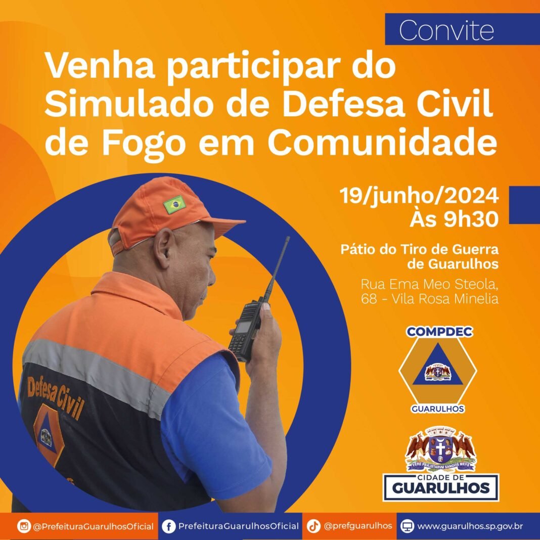 A Coordenadoria de Proteção e Defesa Civil (Compdec) de Guarulhos, em parceria com diversas entidades de segurança pública e emergência, realizará um simulado de incêndio em comunidade na próxima quarta-feira, dia 19. O treinamento, que ocorrerá no Tiro de Guerra de Guarulhos, visa aprimorar a capacidade de resposta e o atendimento em situações reais de incêndio.