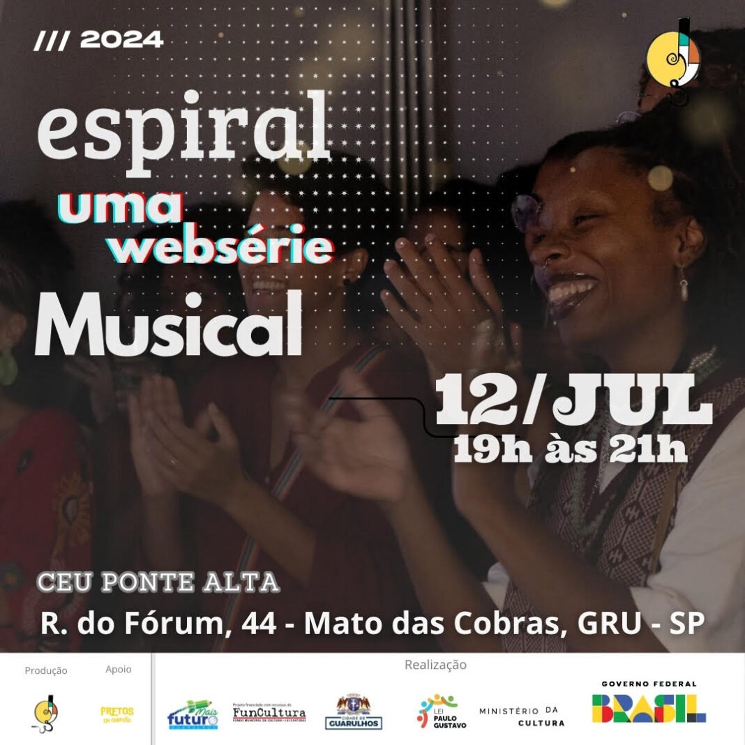 Projeto aprovado pelo FunCultura, o Espiral acontece com recursos federais da Lei Paulo Gustavo e apoio da Prefeitura de Guarulhos, por meio da Secretaria de Cultura e do programa Mais Futuro.